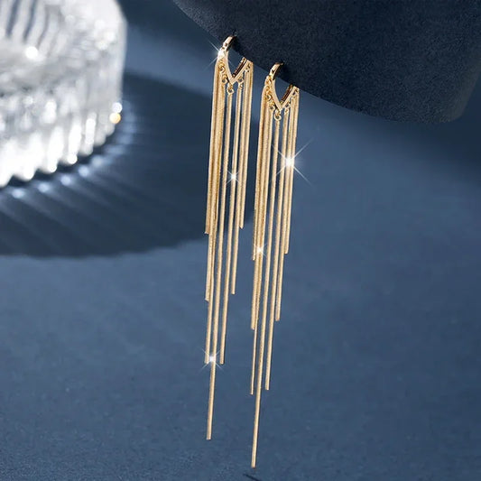 Boucles d'oreilles pendantes en forme de cœur pour femme, style vintage, couleur or, à franges et à longues pampilles