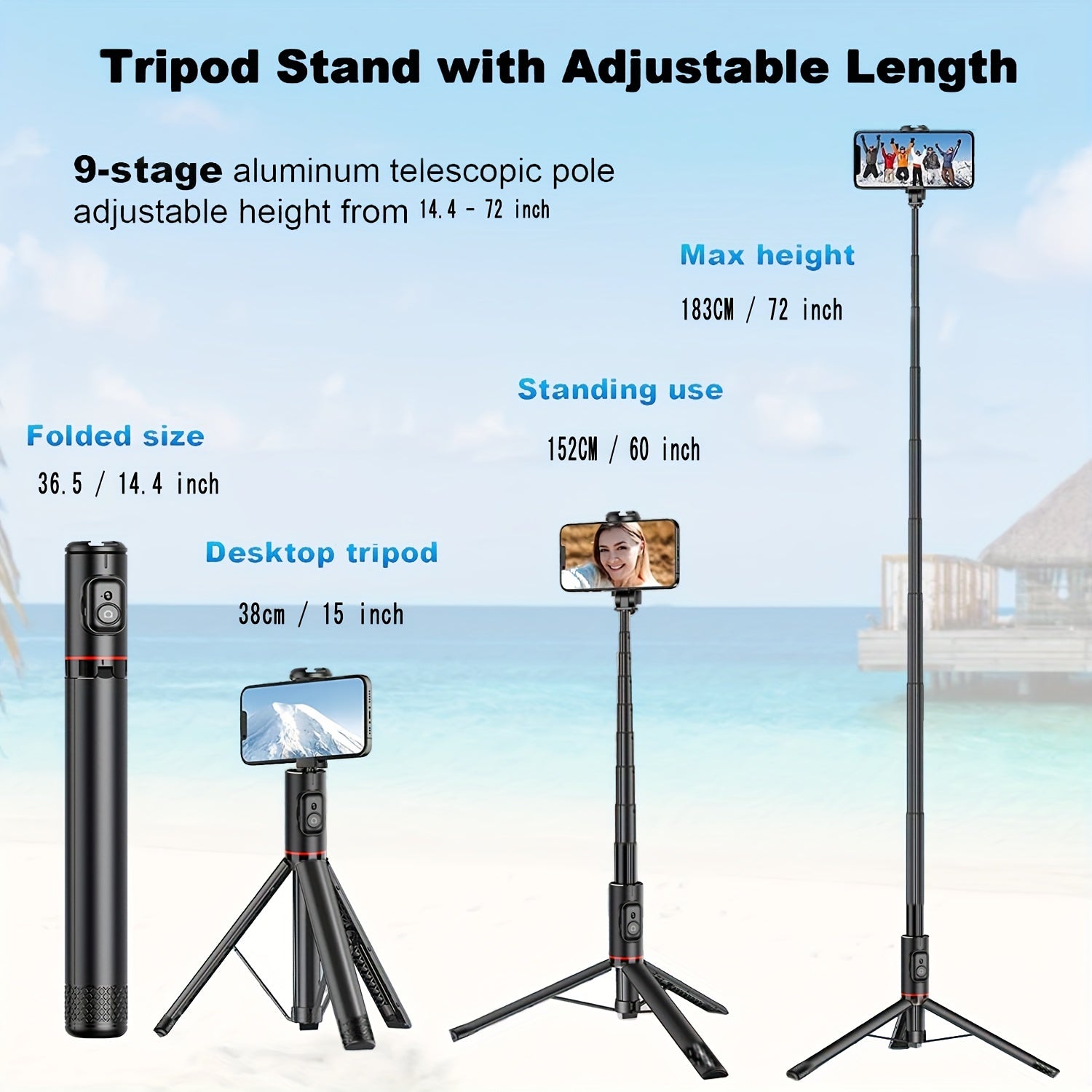 Nom du produit : Selfie Stick 72" HKXYK â Aluminium Extensible + TrĂ©pied IntĂ©grĂ©
