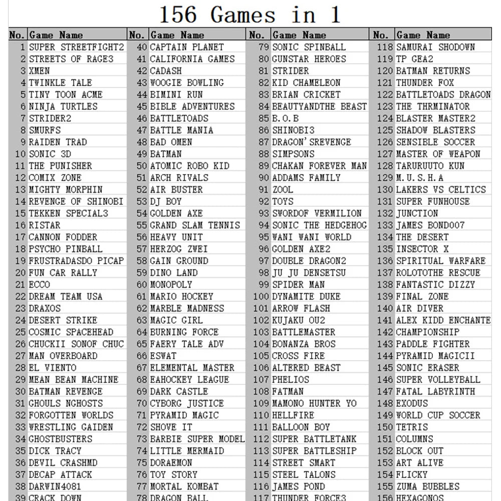156 jeux pour console de jeu rétro Sega Megadrive Mini Arcade