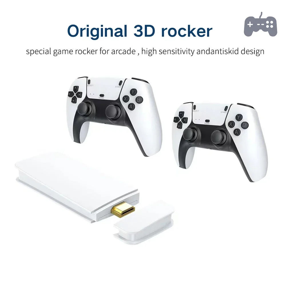 · Livré avec 2 manettes sans fil 2.4G, un Game Stick HDMI, une clé USB 64 Go, un récepteur et un câble d’alimentation.