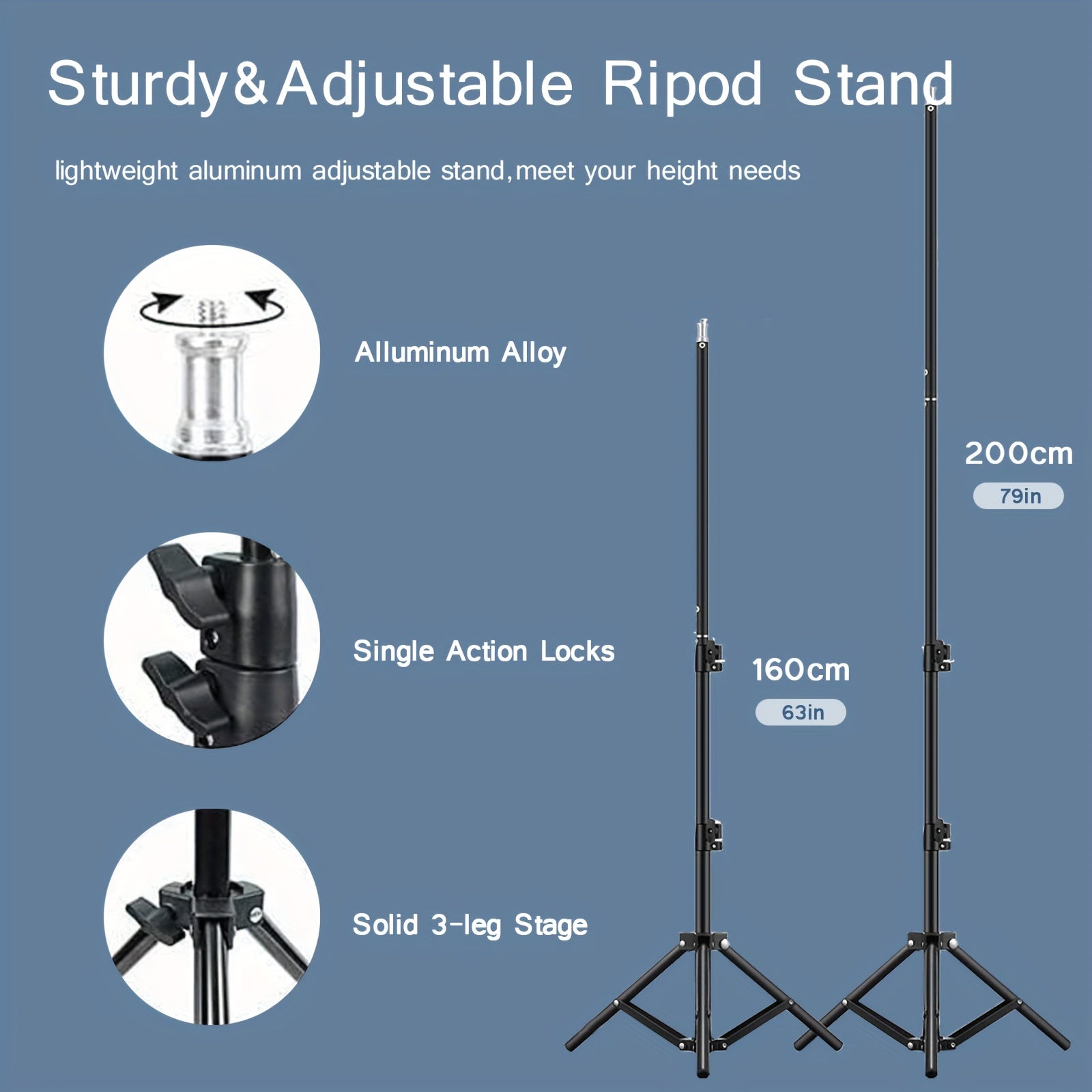 - Support télescopique en aluminium solide, réglable en hauteur selon vos besoins (de la prise assise à la prise debout).
