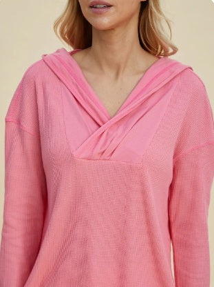 Sweat à capuche à manches longues et épaules tombantes Double Take Full Size