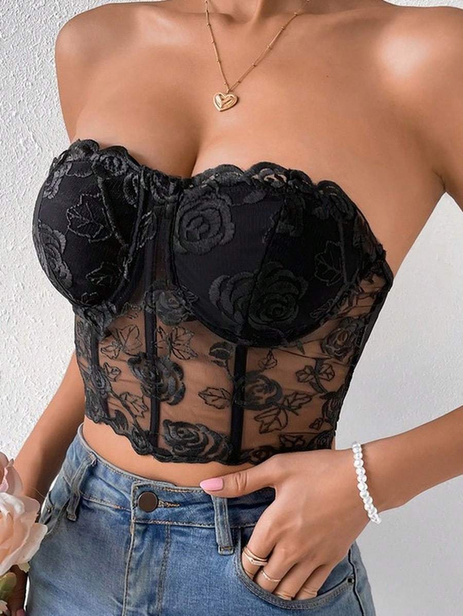 Bustier en dentelle florale Haut court